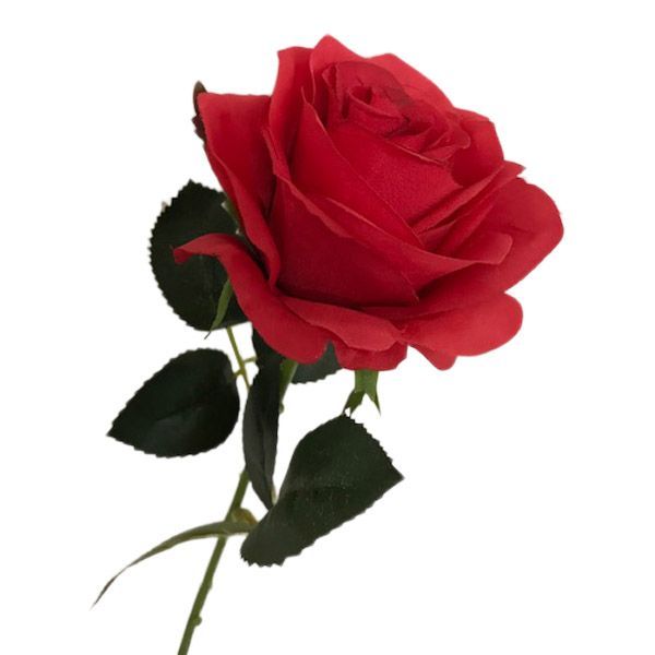 Denne kunstige, røde rose er en klassisk blomst, som pynter i enhver buket. Blomsterstilken er meget naturtro. Nem at holde og kræver ingen vand og pleje. Fordelen ved kunstige blomsterstilke er, at de kan stå alle steder og ser flotte ud året rundt. Sæt flere blomsterstilke sammen af samme slags eller mix med andre kunstige stilke og grønt. Kom buketten i en vase og stil den i boligen, sommerhuset, receptionen, restauranten, cafeen eller i kontormiljøet. Silkeblomsten er 100 % allergivenlig og kan rengøres med vand, eller brug en føntørrer, hvis det kun er støv.