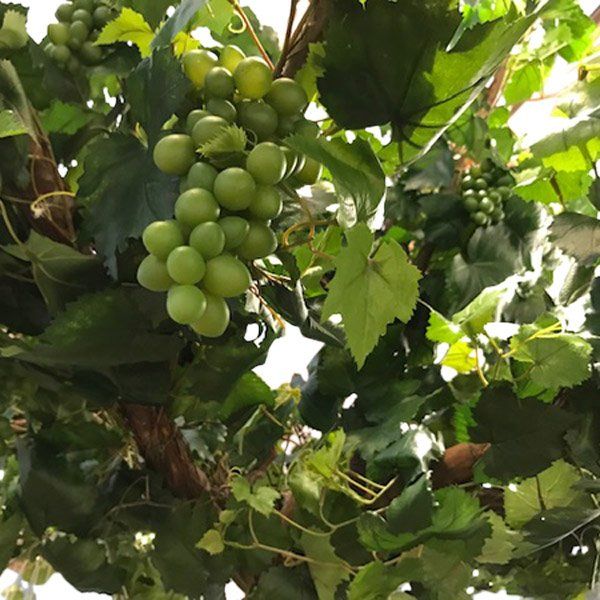 Dette kunstige vintræ meget dekorativt. Opstammet i modellen, og har grønne drueklaser hængende. Kronen er opdelt i flere dele og nemt at montere ned i de afmærkede huller. Stammen er lavet i glasfiber. Vintræet fåes i flere størrelser, og er nem at holde og kræver ingen vand og pleje. Træet er af god kvalitet, samt holder farven godt. Fordelen ved et kunstigt vintræ er, at det kan stå alle steder og ser flot og grønt ud året rundt. Sæt træet i en fin krukke eller kurv og det giver hygge til indretningen i restauranten, baren, vinkælderen eller orangeriet. Træet er 100 % allerigvenlig og kan rengøres med vand eller brug en føntørrer hvis det kun er støv.